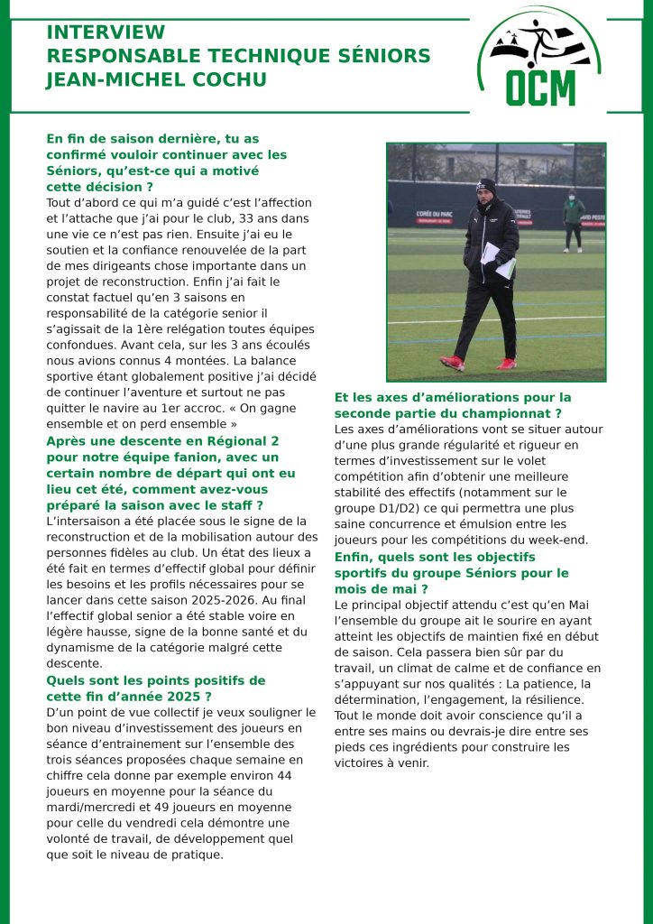 INTERVIEW – Responsable Technique Séniors – JEAN-MICHEL COCHU