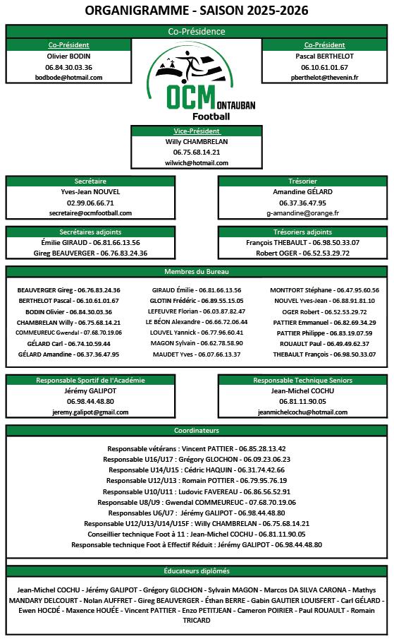 Le club de l’OC MONTAUBAN Football est une association sportive assujettie au régime associatif loi 1901.